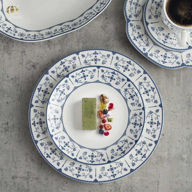 China Dinnerware Brands European Style Porcelain Plates Set Dinnerware Blue Danube Crockery Ceramic Tableware Supplier