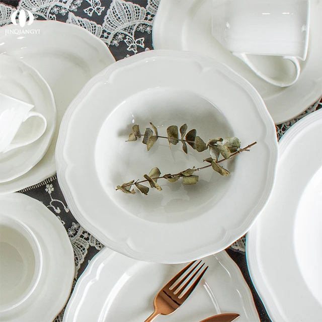 JQY Ceramic Plates Set Dinnerware Horeca Catering Tableware Assiettes En Porcelaine Crockery Elegant Porcelain White Dinner Set